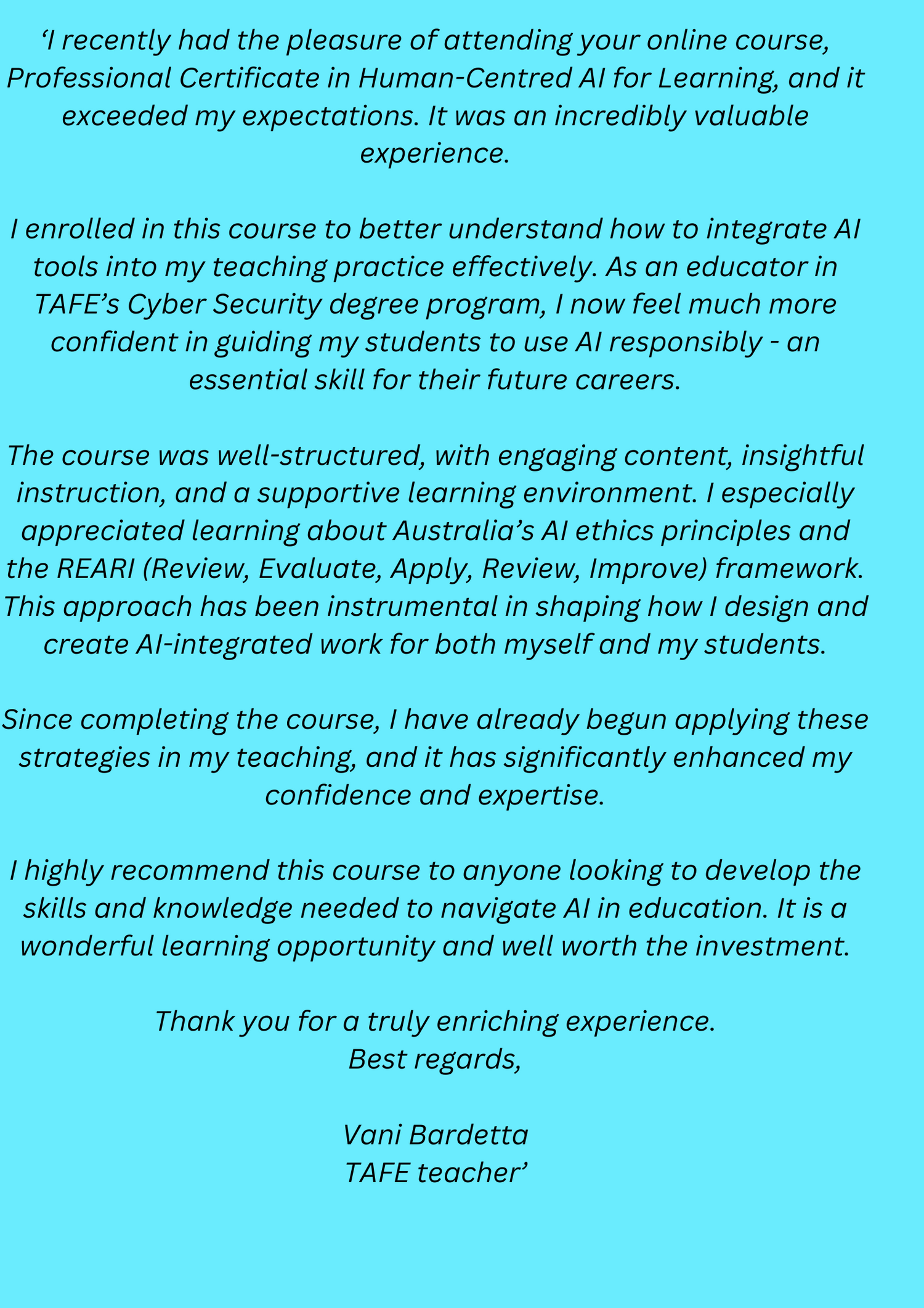 Learner Testimonial
